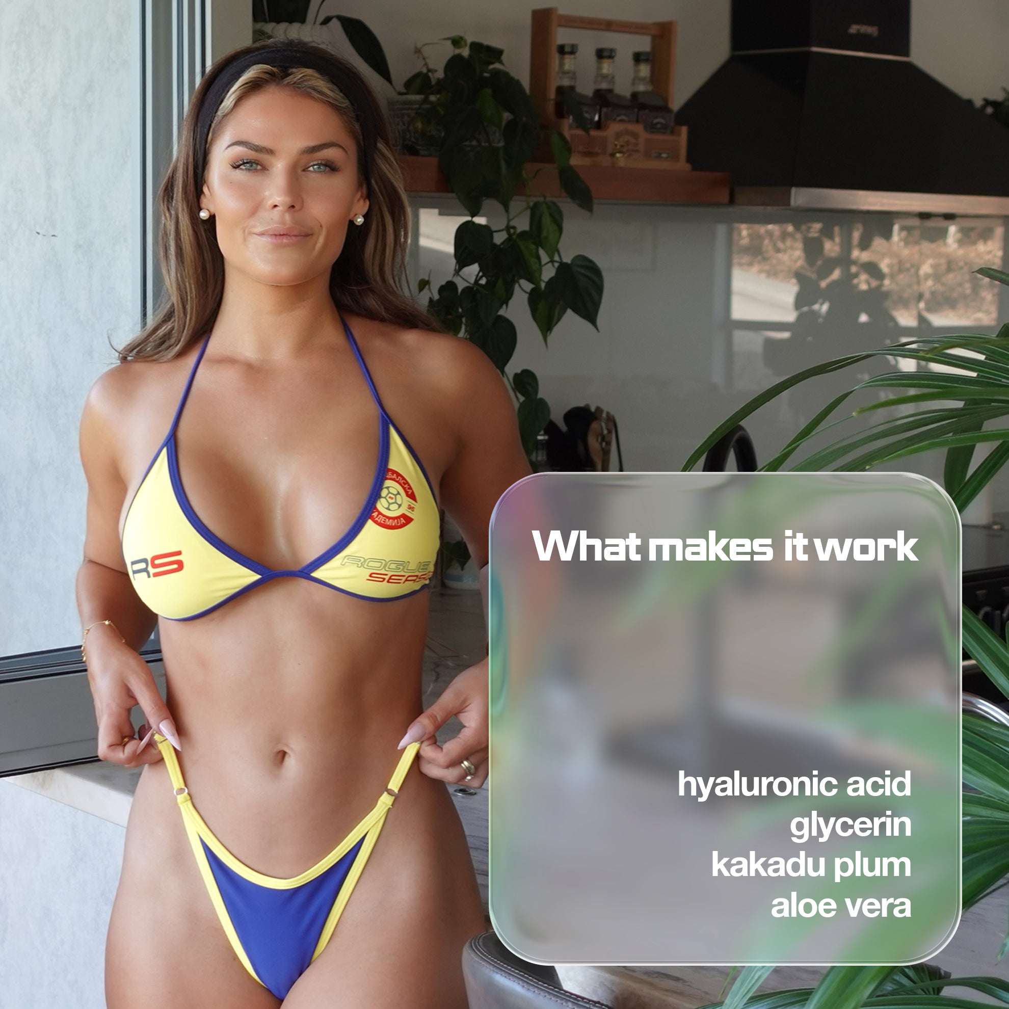 Hyaluronic Acid pulls moisture deep into the skin and keeps it there, so your tan looks fuller, smoother, and more luminous. It stops that dry, patchy fade and gives your glow serious staying power.